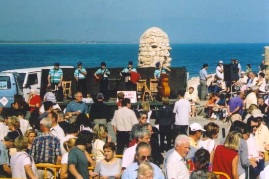 Voor de meerpaal waar vroeger de grote zeilschepen afmeerden worden de zeemansliederen ten gehore gebracht zoals: