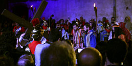 Manages. Om het dorpje vast in de sfeer van Jeruzalem in de dagen van Jezus te brengen trekken in de vooravond, voorafgaand aan een mis en de opvoering van de Passió, Romeinse soldaten door de straten.