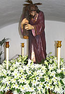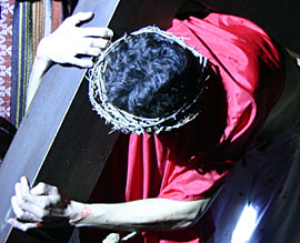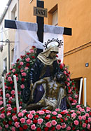 La Via Dolorosa. Om klokslag twaalf uur van de nacht van witte donderdag op goede vrijdag begint La Via Dolorasa, de kruisweg, die enkele uren zal gaan duren en die diep in de nacht zal eindigen met de kruisiging op het plein bij de kerk. De straatverlichting in Verges is gedoofd en bij het schaarse licht van aan de muren bevestigde fakkels begeeft de stoet zich - op het ritme van schetterende trompetten en de monotone dreun van de tamboers - traag door het overvolle dorp, waarbij Jezus met het kruis wordt voorafgegaan en gevolgd door nazarenas, tronos, fanfares én vijf skeletten. Het is overvol in het dorp, maar met uitzondering van de karakteristieke felle klanken van de fanfare, klinkt er alleen geroezemoes op gedempte toon. Op gezette momenten staakt de ritmische beweging en wordt een van de staties van de kruisweg in beeld gebracht. En La Dansa de la Mort wordt uitgevoerd.